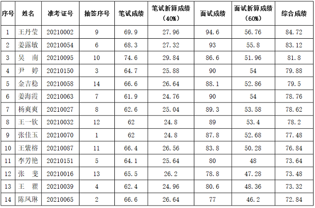 根据《昆明市投资促进局2021年11月对外公开招聘劳务派遣制工作人员公告》程序,现就笔试、面试综合成绩公示如下: