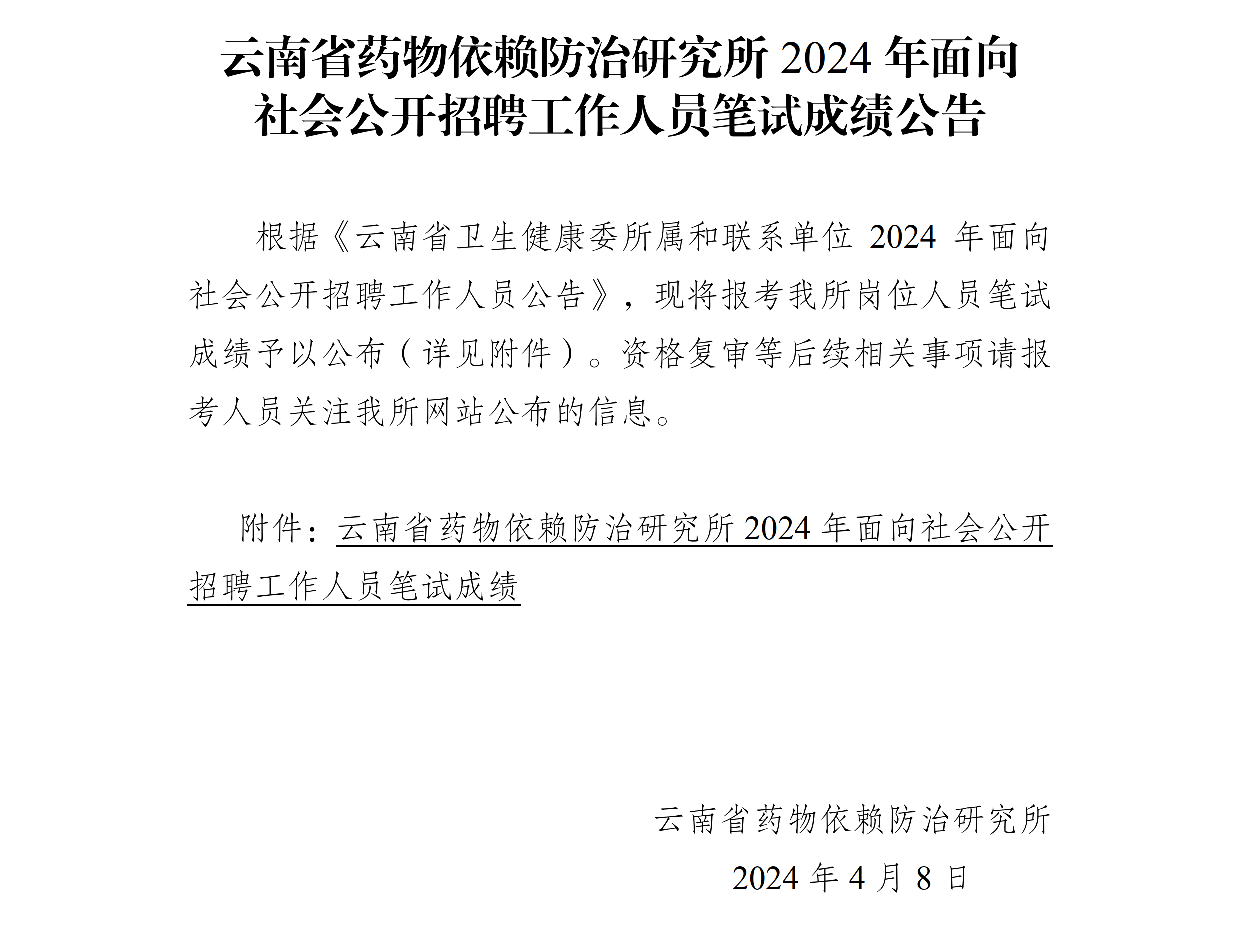 2024年云南省药物依赖防治研究所招聘工作人员笔试成绩公告