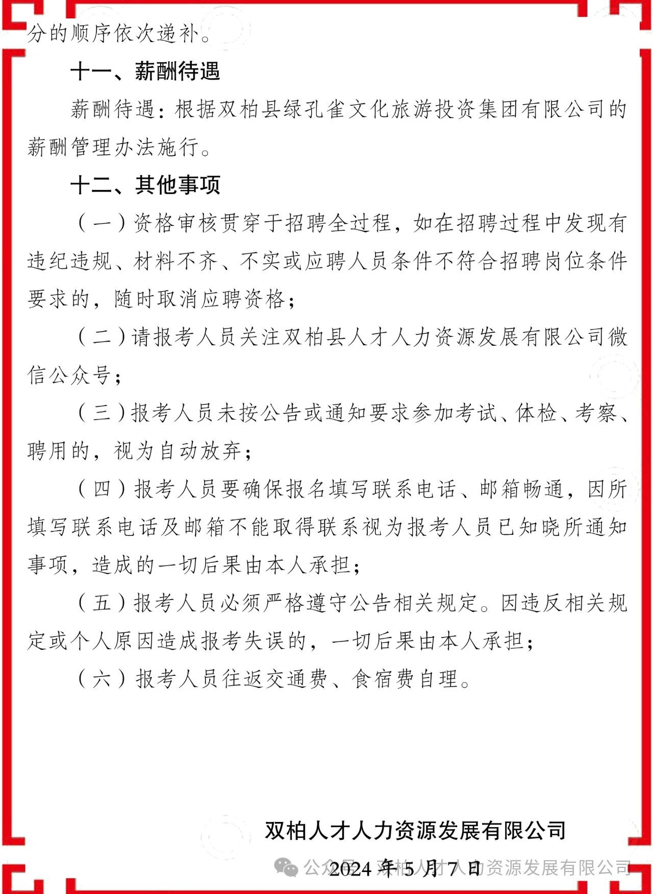 2024年楚雄州双柏县绿孔雀文化旅游投资集团有限公司招聘劳务派遣制员工公告