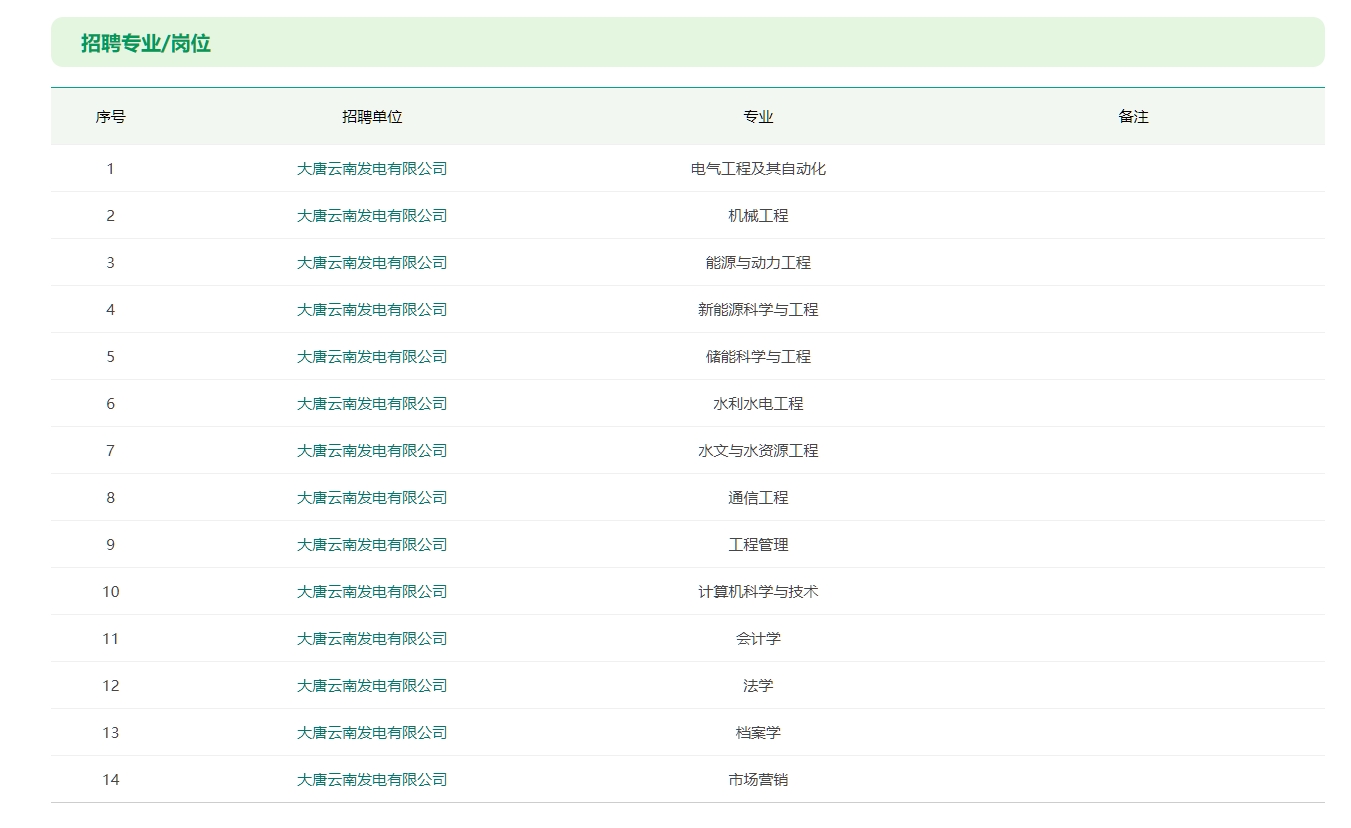 2025年大唐云南发电有限公司所属企业高校毕业生招聘公告