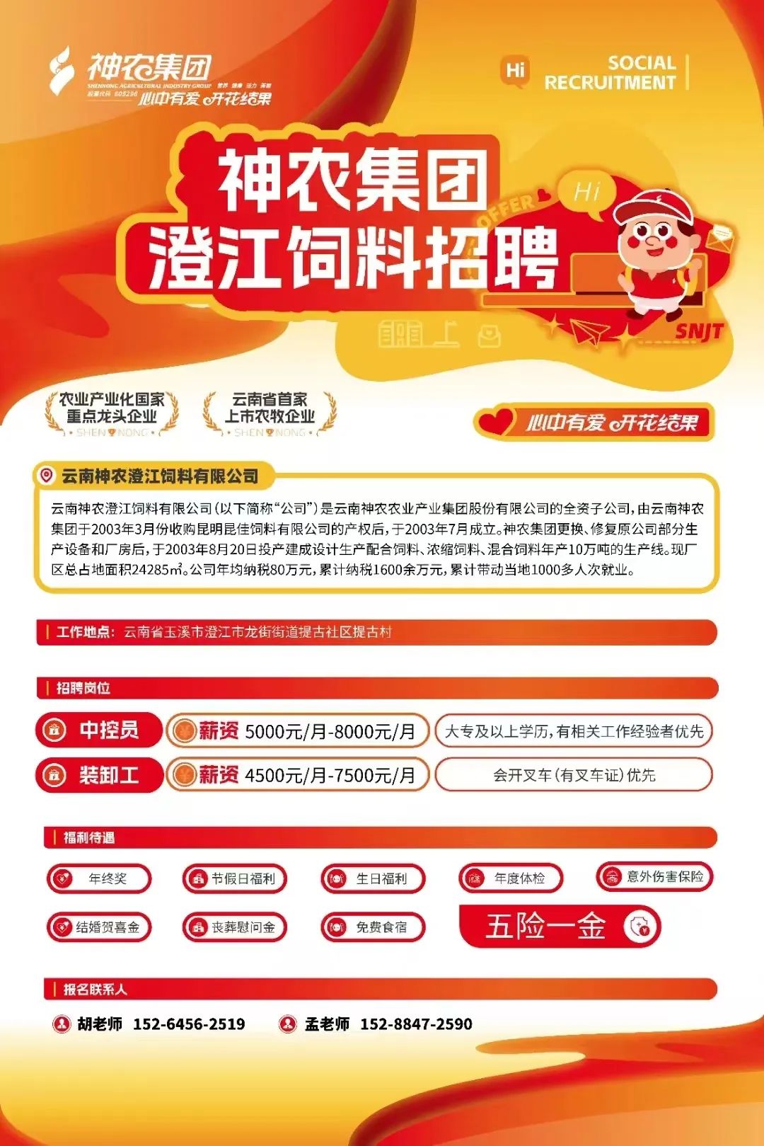 招聘单位:云南神农澄江饲料有限公司