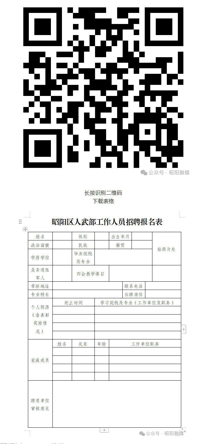 5.《昭阳区人武部工作人员招聘报名表》(见附件);