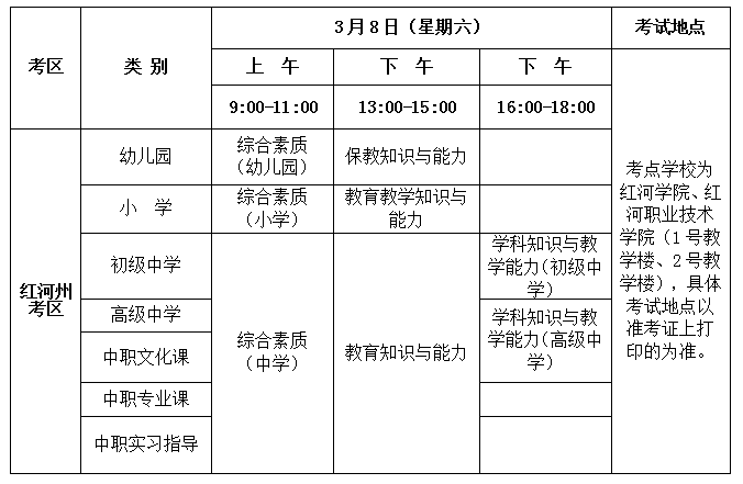 红河州2025年上半年中小学教师资格考试笔试公告