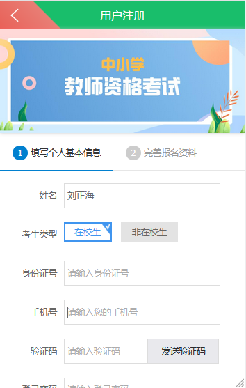 2.选择在全国中小学教师资格考试网(国考报名网)报名所对应的考区,先进行注册,注册的时候需要输入姓名和身份证号码,如果能注册成功,就说明国考报名网的信息已经同步到审核系统数据库。如果不能注册成功,请耐心等待数据同步,在中小学教师资格考试网报名成功后,正常10分钟后可以在审核系统注册,注册成功后登录审核系统。