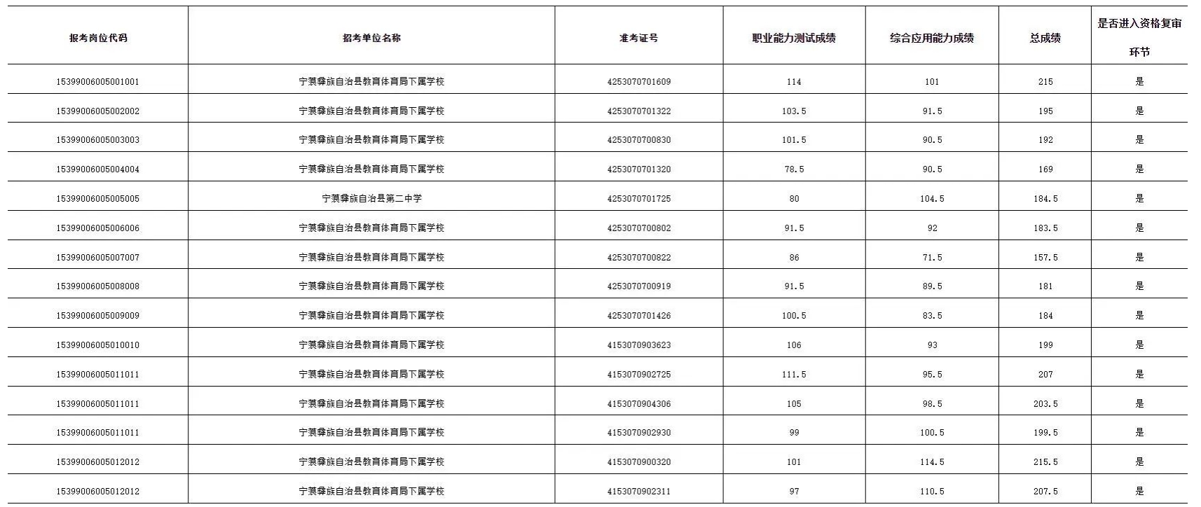 附:宁蒗县2025年公开招聘事业单位工作人员进入资格复审环节考生名单(注:点击图片放大查看)
