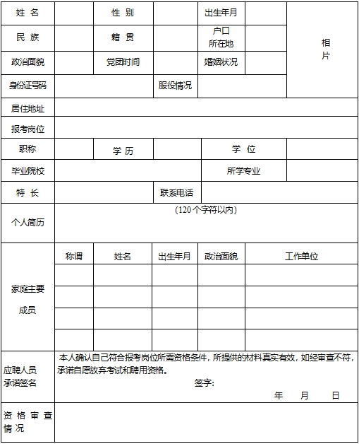 附件:富民县消防救援大队招聘专职消防员报名申请表