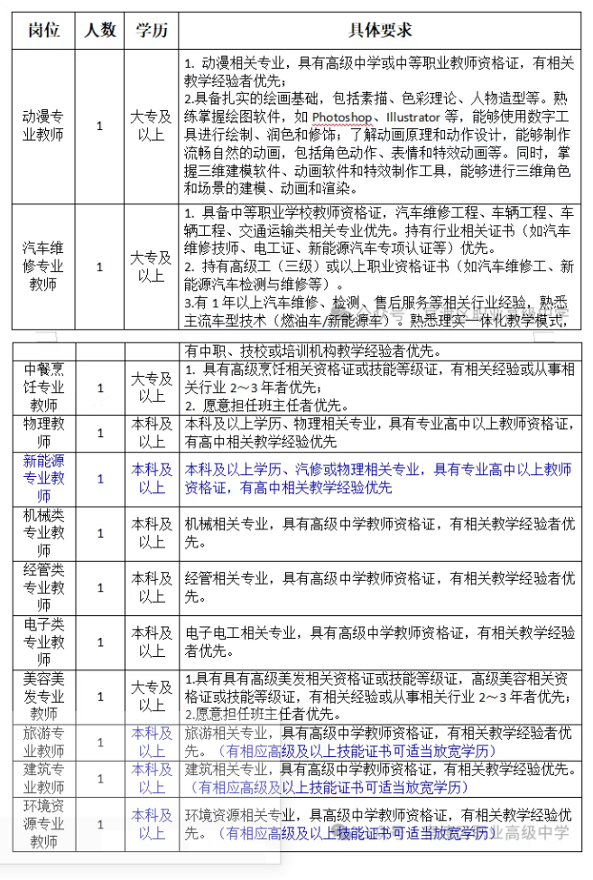 昆明市官渡区职业高级中学2025年度秋季学期教师招聘公告