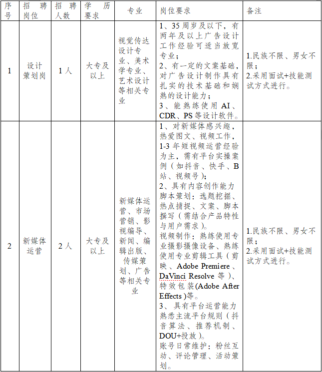 2.聘用方式:经考察合格后,由澄江市启澄人力资源有限责任公司与聘用人员签订劳动合同,派遣至澄江市文化旅游投资开发有限责任公司数字传媒分公司工作。