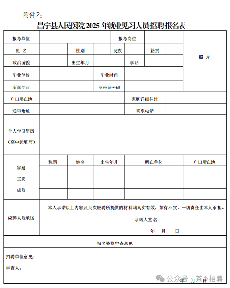 2.昌宁县人民医院2025年就业见习人员招聘报名表