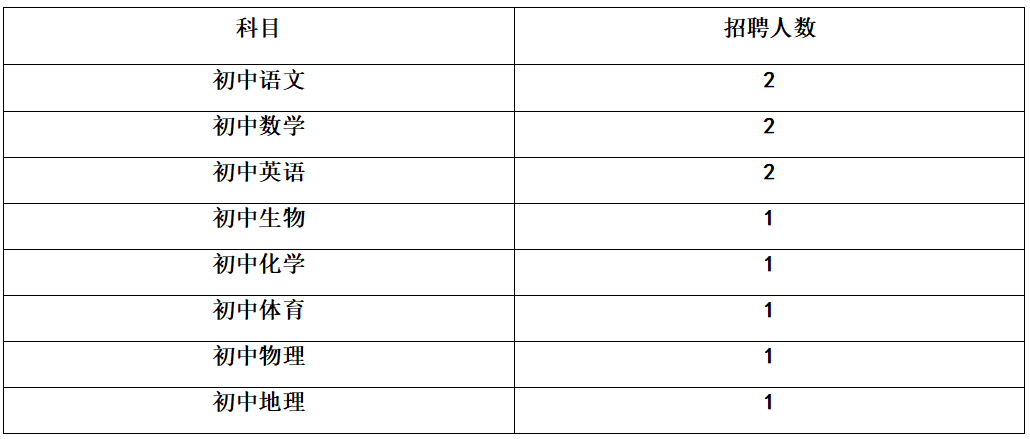 1.初中学段共招11人,详见下表: