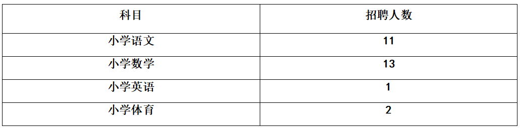 2.小学学段共招27人,详见下表: