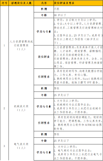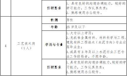 四、招聘岗位基本要求