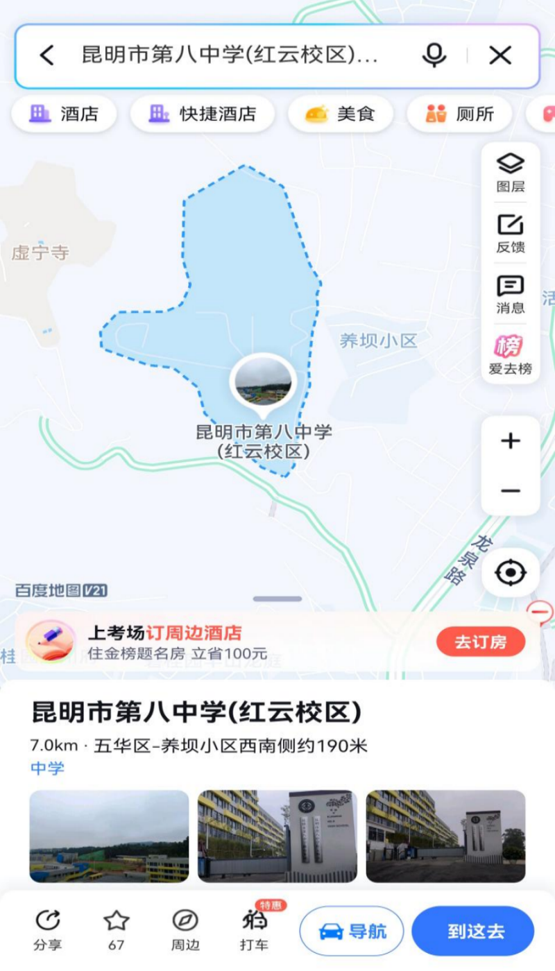 昆明市第八中学红云校区考点地址:昆明市五华区龙泉路522号