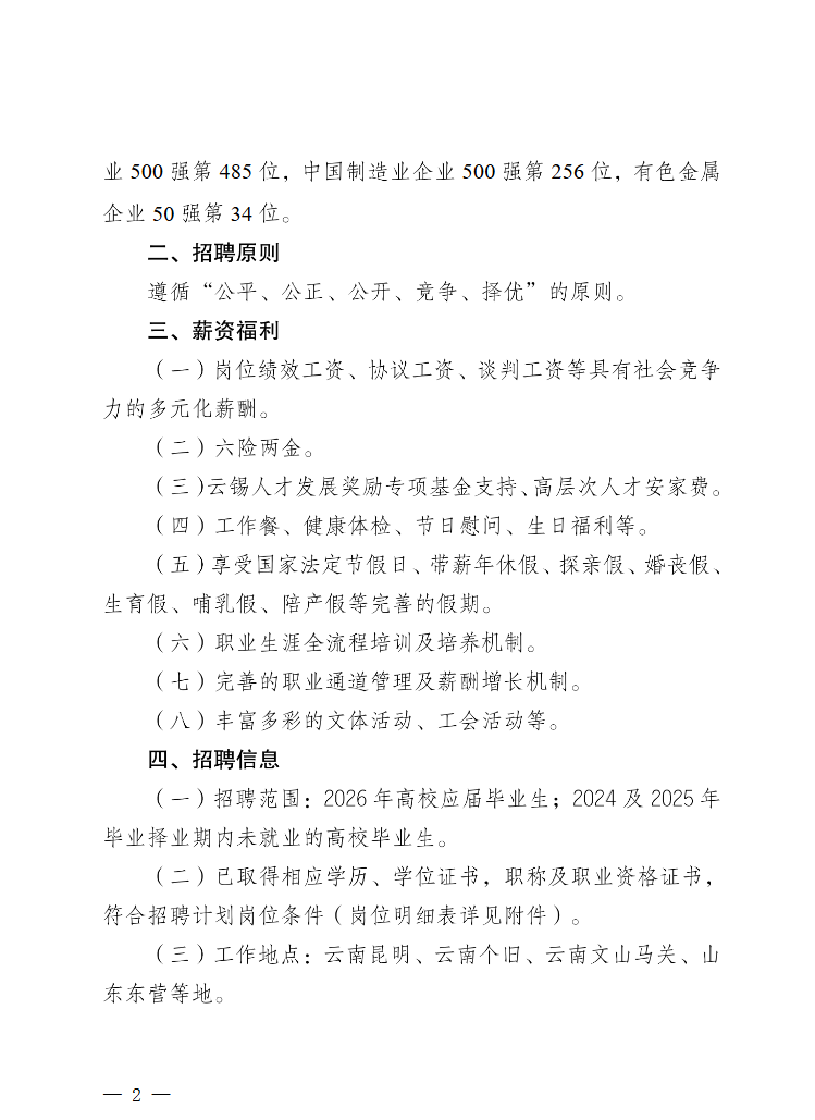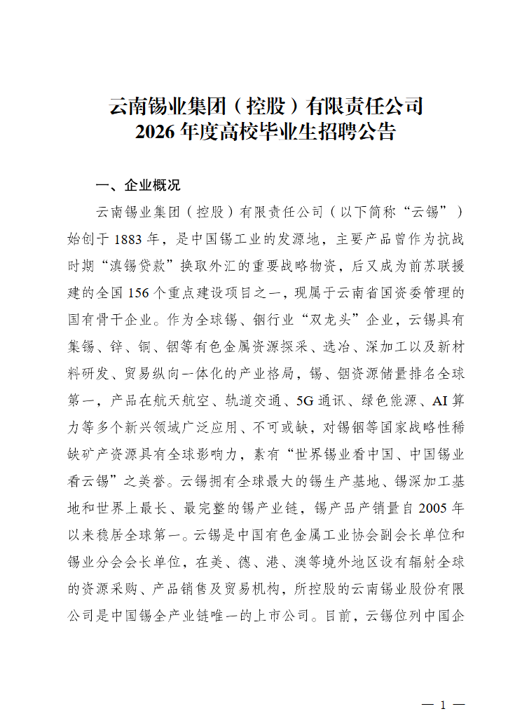 附件【附件:云南锡业集团(控股)有限责任公司2026年高校毕业生招聘计划岗位明细表.pdf】