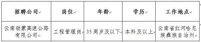 山东高速云南发展有限公司2025年下半年招聘公告