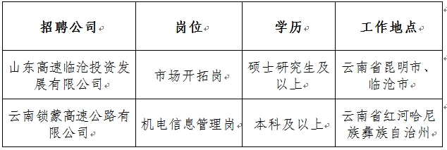 附件【1:附件:山东高速云南发展有限公司2025下半年招聘计划表.xlsx】