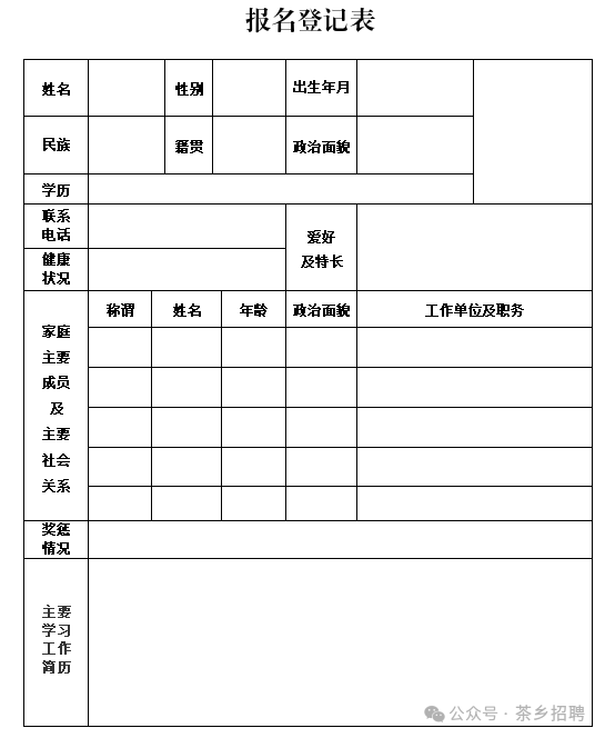 (三)报名需提供材料:现场报名需携带本人户口本、有效身份证、毕业证、若有机关工作经验者,需提供原单位解除劳动合同材料。网络报名需将报名表相关信息填好上传至单位邮箱cnxjgswglj@163.com。同时上传本人户口本、有效身份证、毕业证、若有机关工作经验者,还需上传原单位解除劳动合同材料。报名人员须对本人所提供材料的真实性负责。