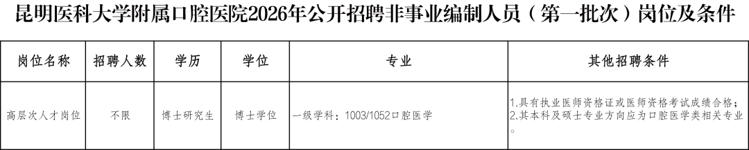1.《昆明医科大学附属口腔医院公开招聘非事业编制人员报名表》(附件);