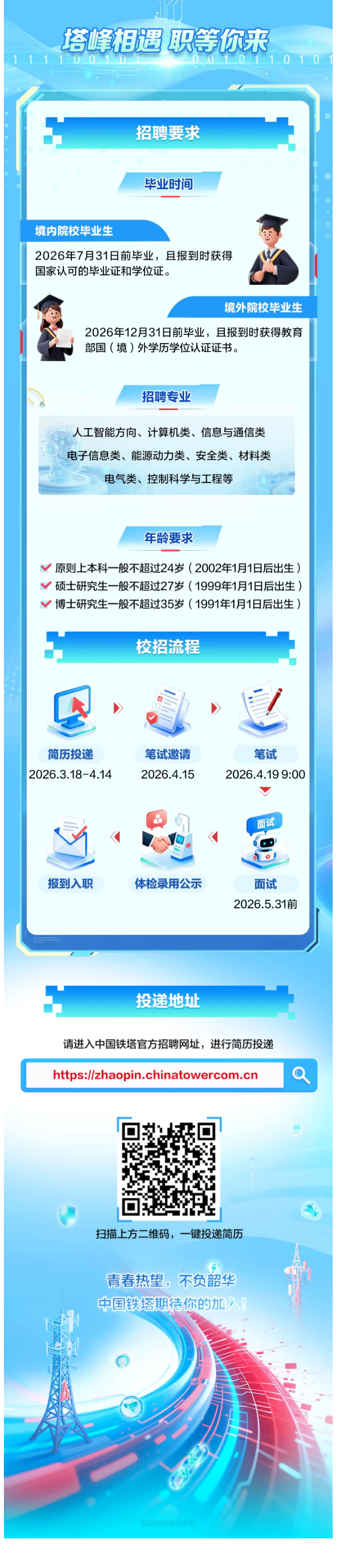 青春与塔同行 | 中国铁塔2026年春季校园招聘正式启动!