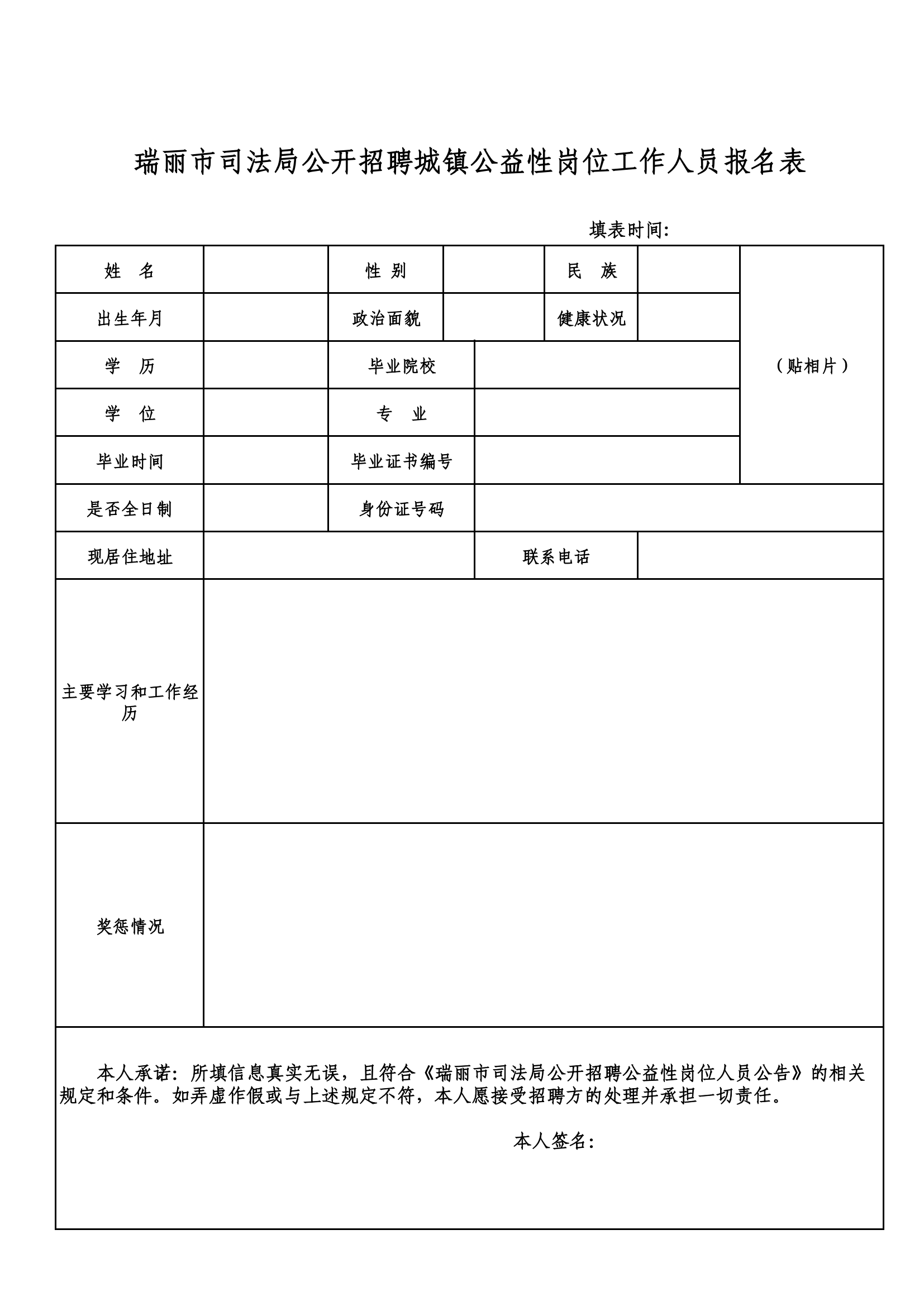 附件:瑞丽市司法局公开招聘城镇公益性岗位工作人员报名表。