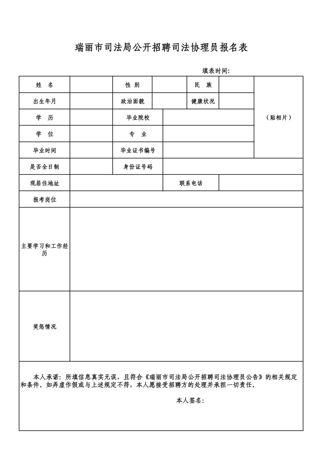 附件:瑞丽市司法局公开招聘司法协理员报名表