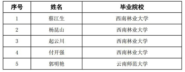 按照2016年2月1日发布的《国家林业局昆明勘察设计院2016年公开招聘人员公告》,我院首批公开招聘的21名拟聘用人员已于2016年4月底在院网站公示。根据《国家林业局人事司关于下达2016年直属单位接收高校毕业生计划的函》(人综函[2016]16号)下达给我院2016年接收高校毕业生计划27名的指标,我院于2016年6月进行补充招聘,对4月后投递简历人员进行资格审查、笔试、面试、体检和考核程序,经领导班子集体研究,确定下列人员为我院2016年公开补充招聘拟聘用人员,现公示如下: