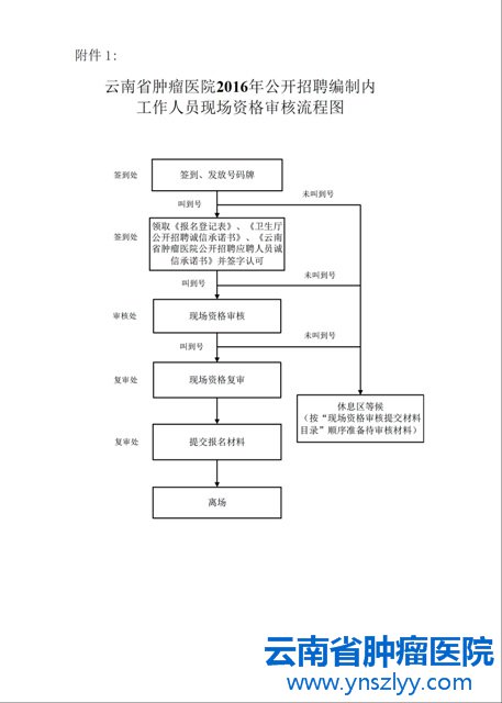 附件1:云南省肿瘤医院2016年公开招聘编制内工作人员现场资格审核流程图