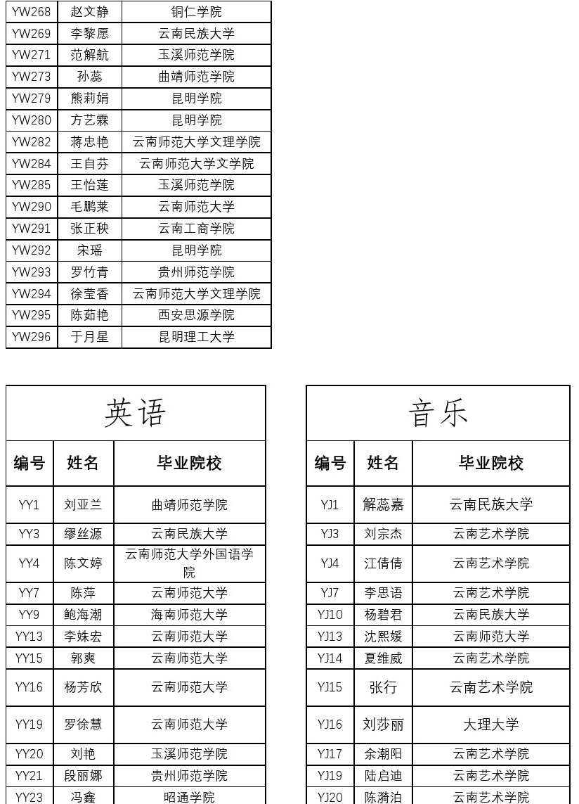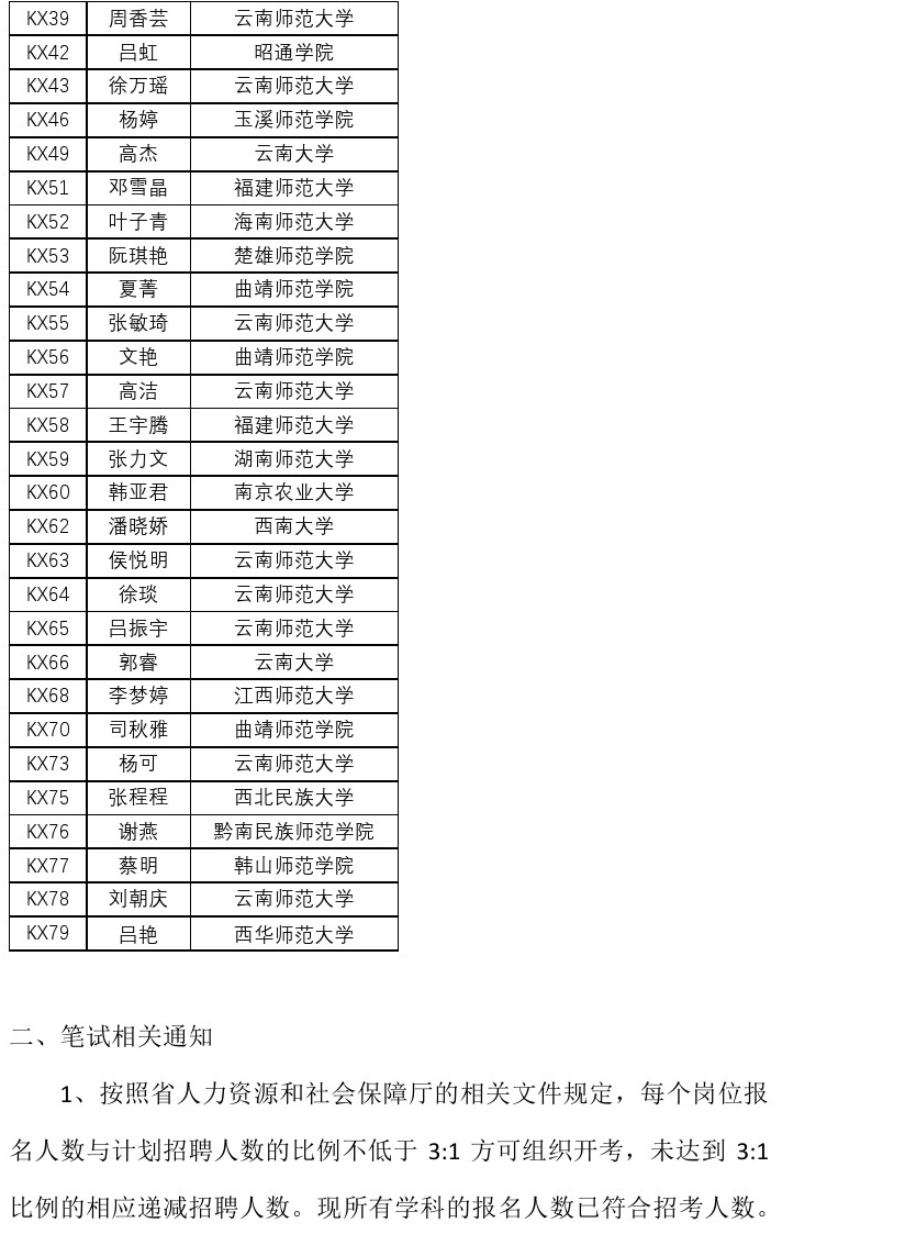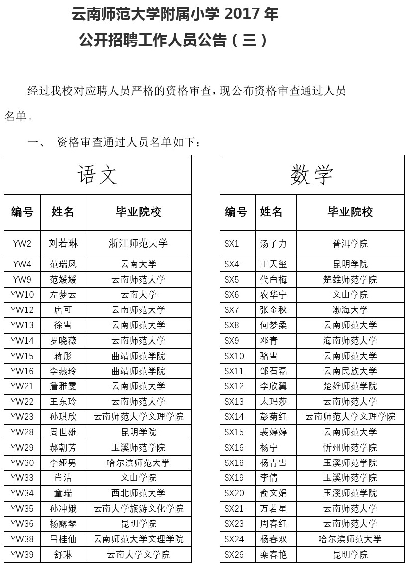 云师大附属小学2017年招聘人员资格复审名单