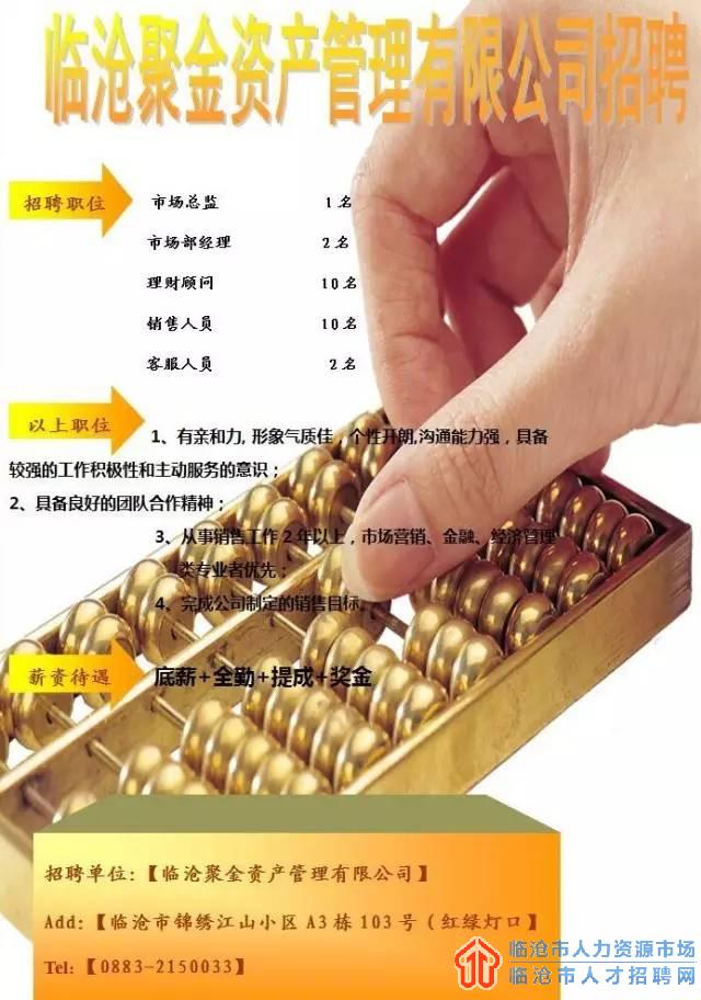 2017年临沧聚金资产管理有限公司招聘信息