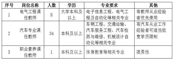 3.年龄不超过35岁,有汽车从业工作经验者可适当放宽年龄限制。