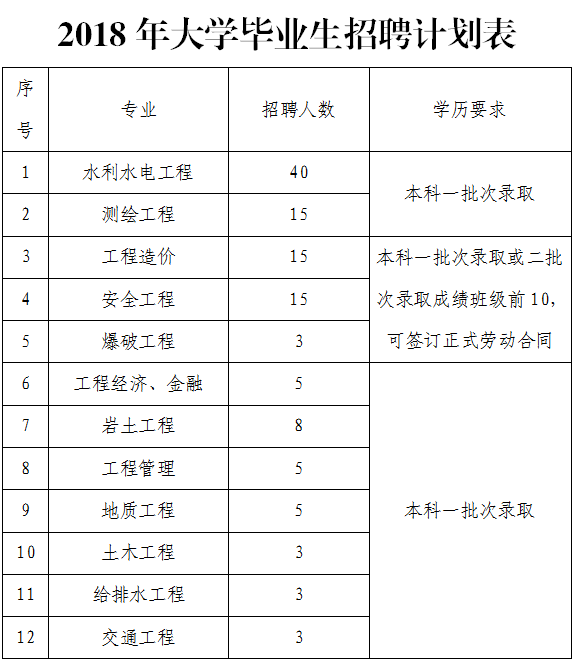 素质要求:身体健康,愿意从事水利水电事业,具有强烈的责任感和吃苦耐劳的品格;