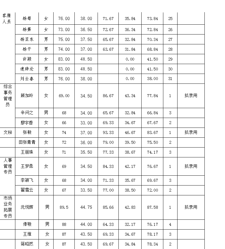 根据工作需要,昆明智慧通有限公司开展了第一批次部分岗位招聘录用相关工作。根据综合笔面试成绩及排名,现对拟录用人员进行公示,如对拟录用人员有异议,请及时向昆明智慧通有限公司反映。