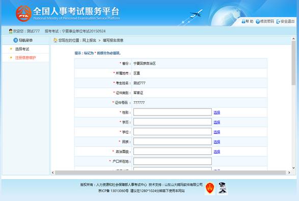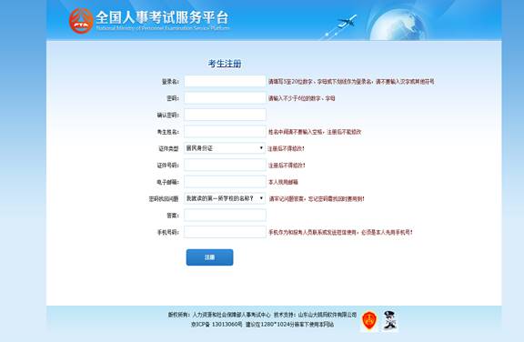 点击“注册”按钮,进入考生注册页面,如下图所示: