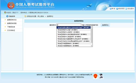 通过点击“选择职位”选项,可以跳转到选择报考职位界面,如下图所示: