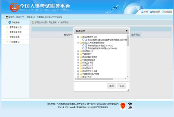 考生也可以点击“选择职位”按钮,通过树形菜单选择对应的职位,如下图所示: