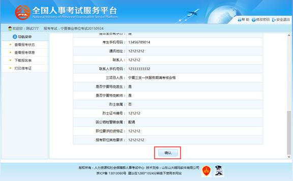 通过点击“报名信息确认”按钮后,跳转到报名信息确认页面,如下图所示: