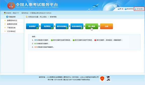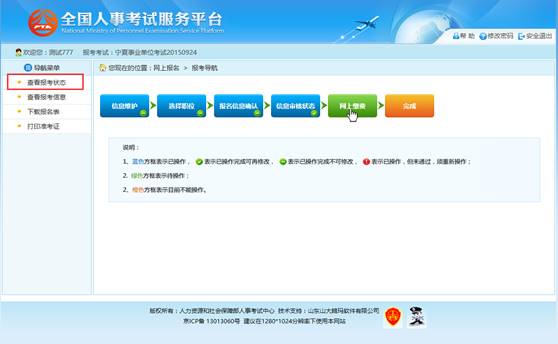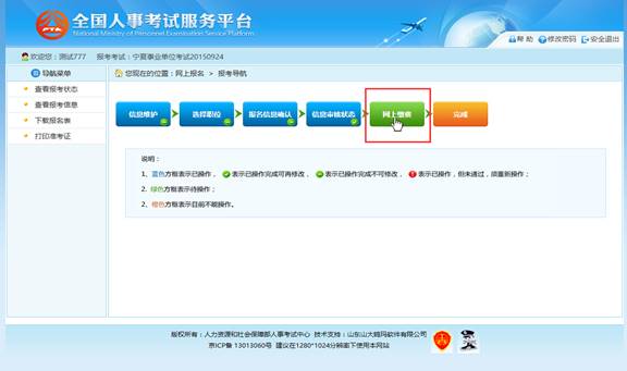 审核通过的考生可以进行网上缴费,点击报考流程中“网上缴费”选项,可以进