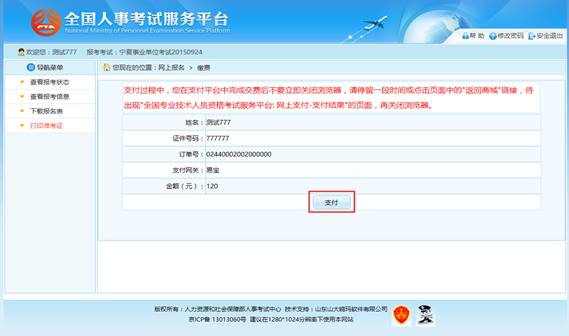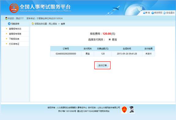 考生可以根据自己的情况选择支付的网关,选择完成后点击“生成订单”按钮,
