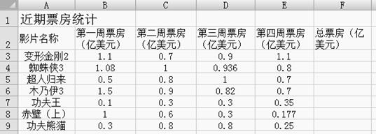 31.下图是用Excel制作的某市近一个月电影票房收入统计情况表,请写出利用求和公式和自动填充功能计算出每一部电影的总票房收入的步骤。