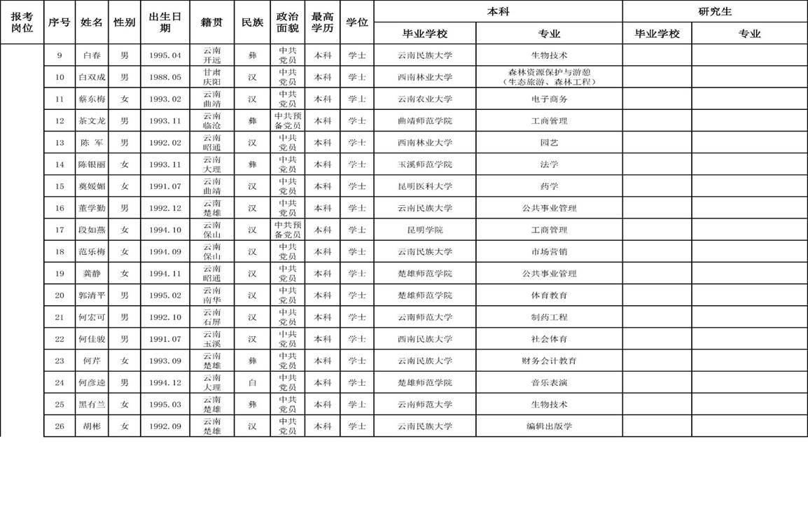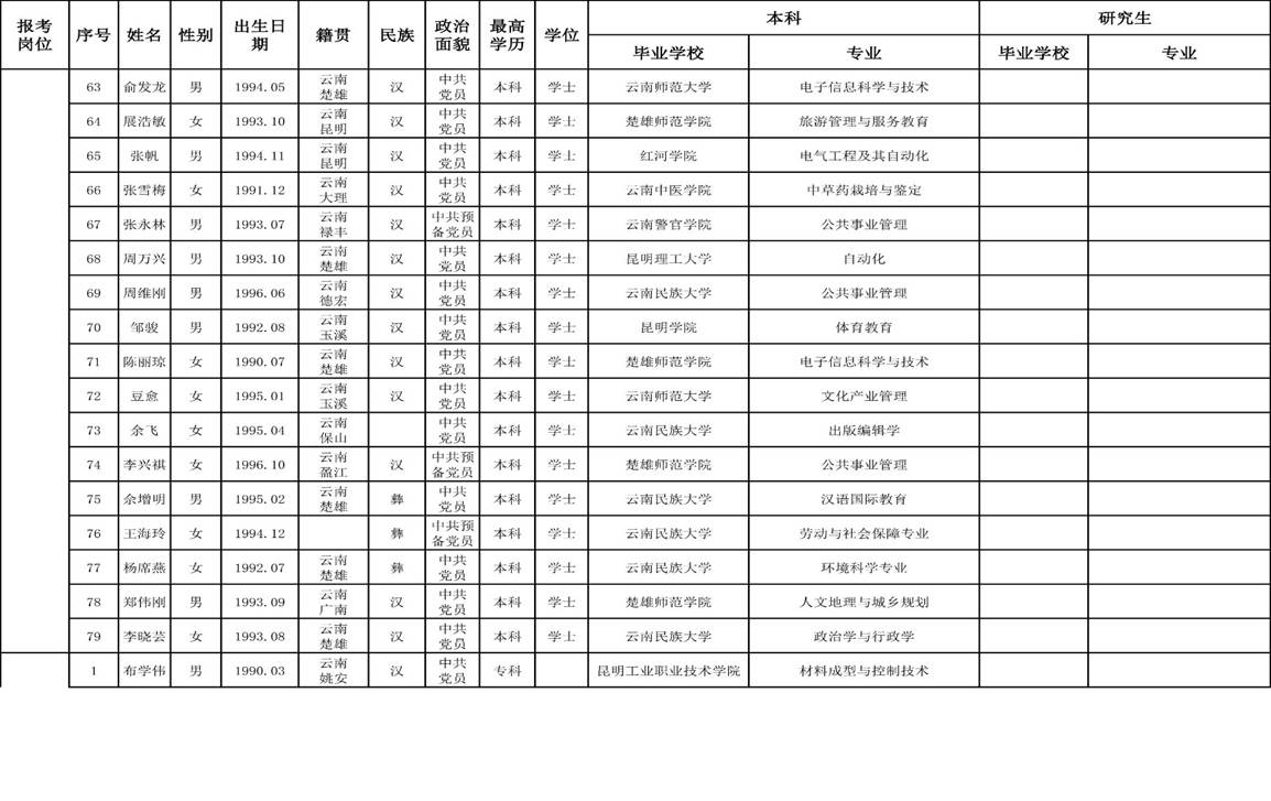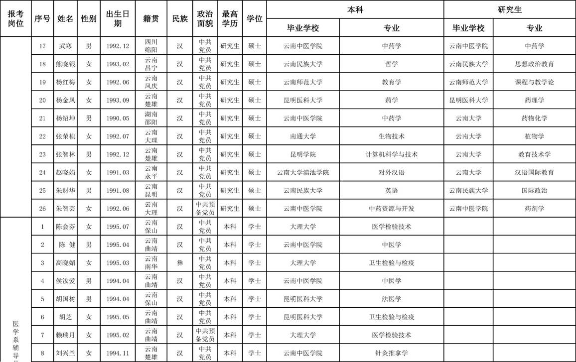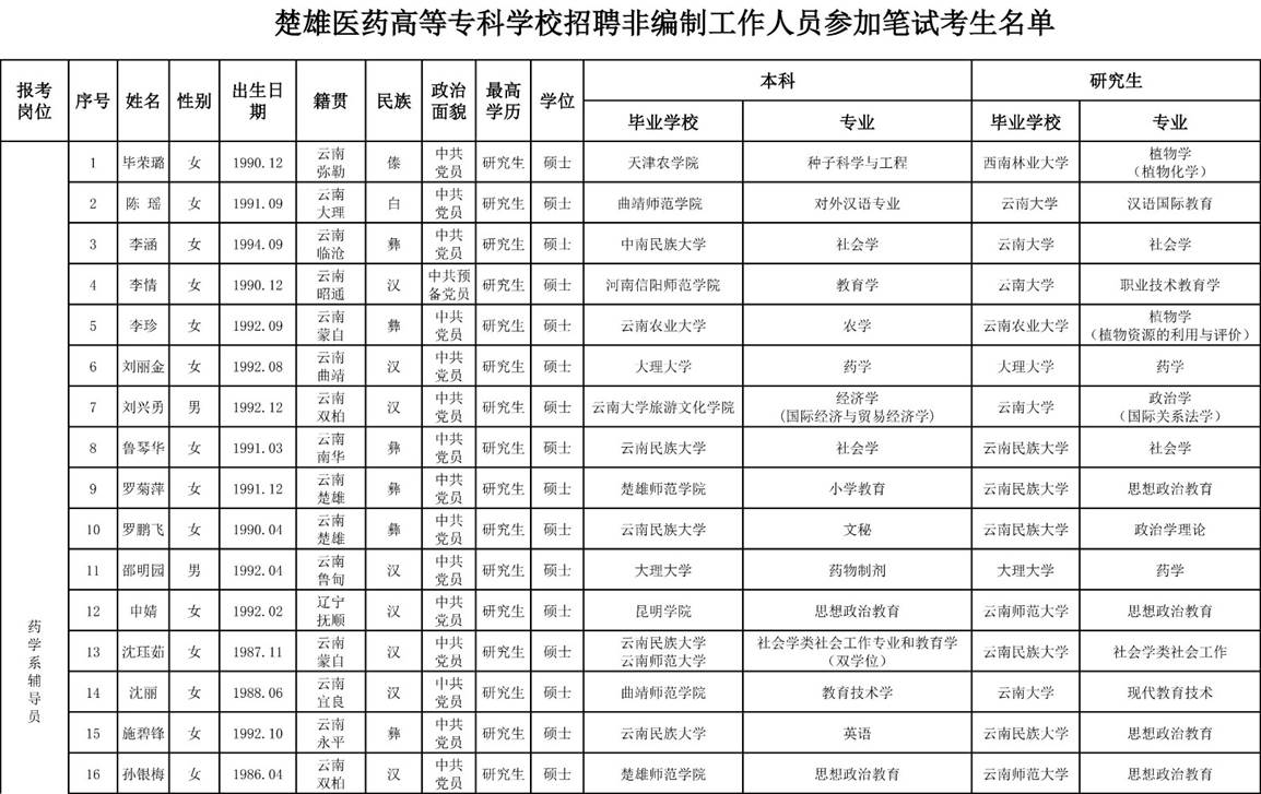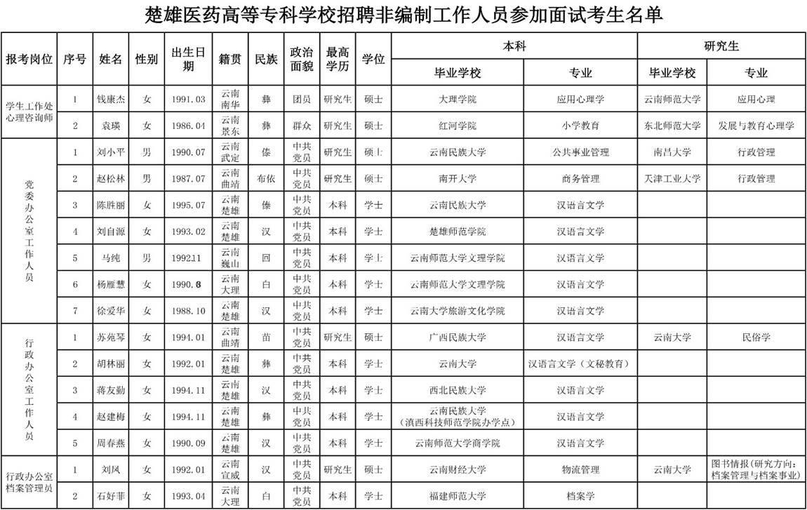 2、楚雄医药高等专科学校2018年公开招聘非编制工作人员面试考生名单。