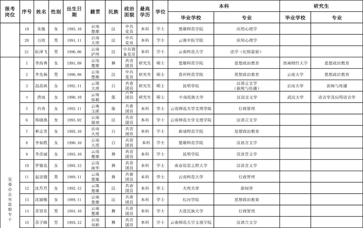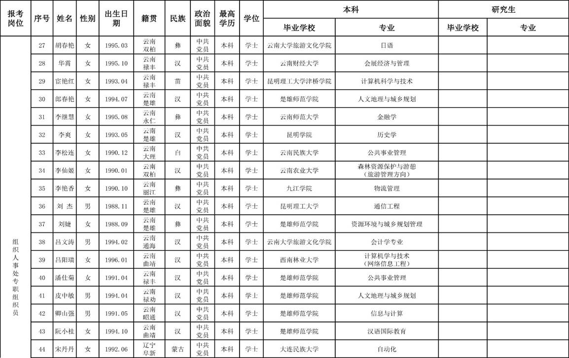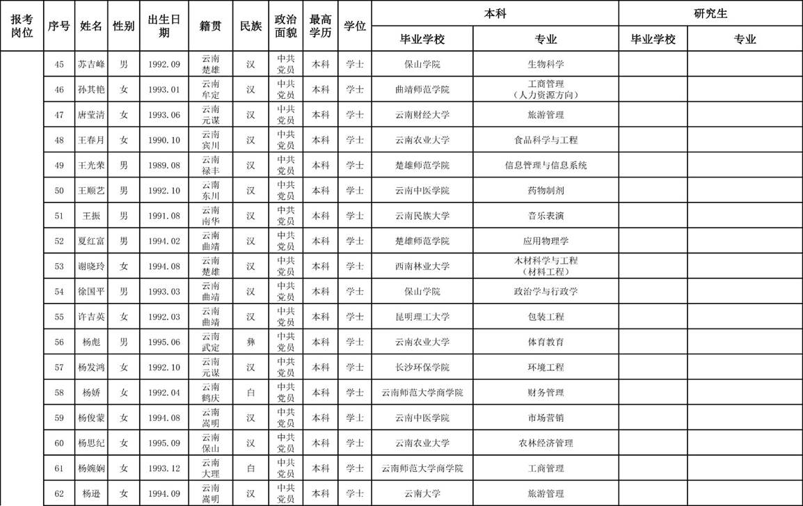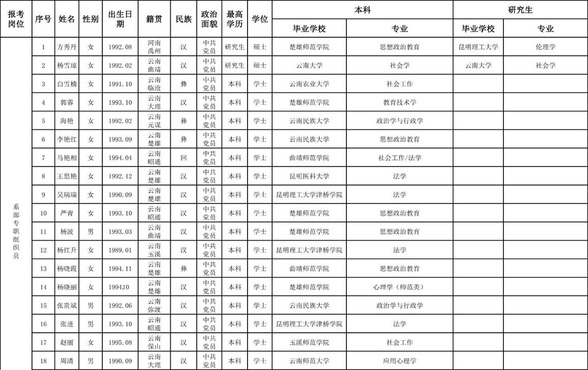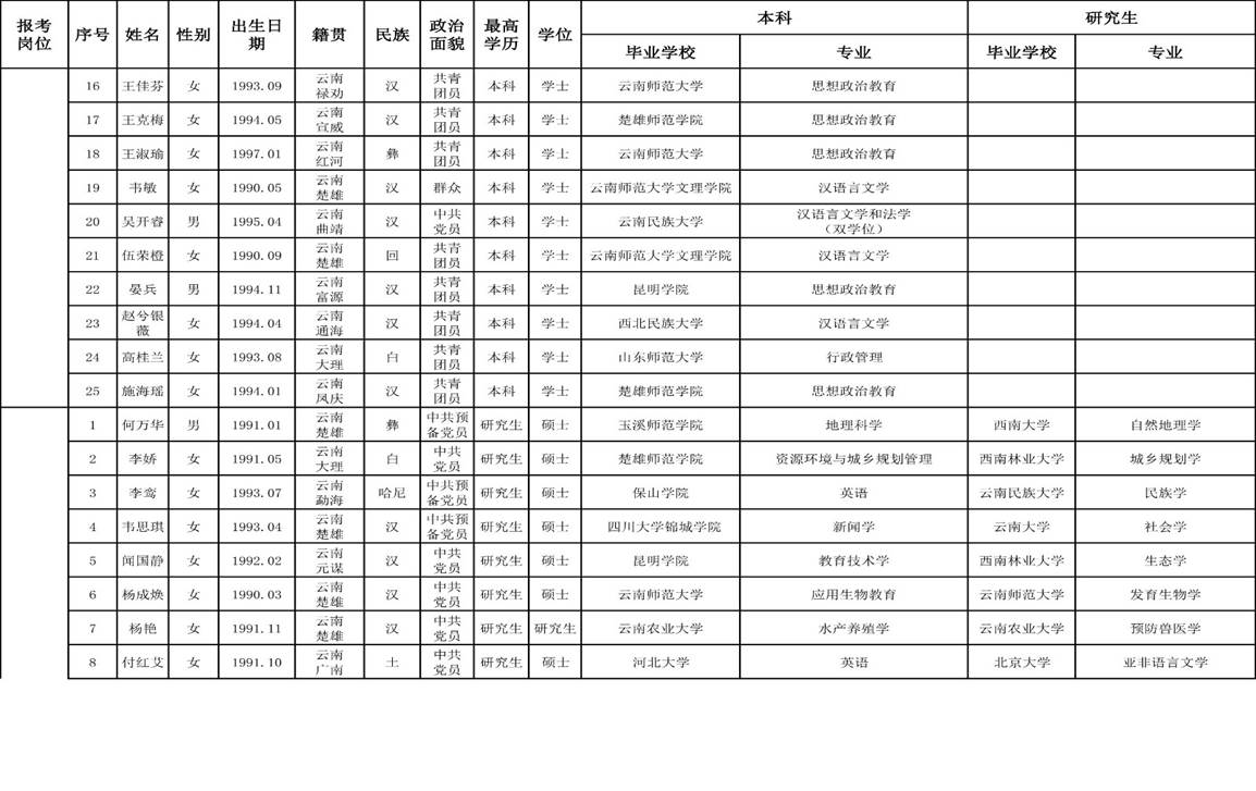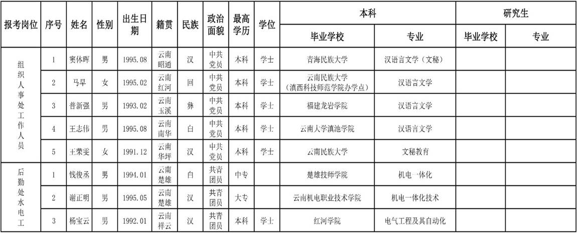 2、楚雄医药高等专科学校2018年公开招聘非编制工作人员面试考生名单。