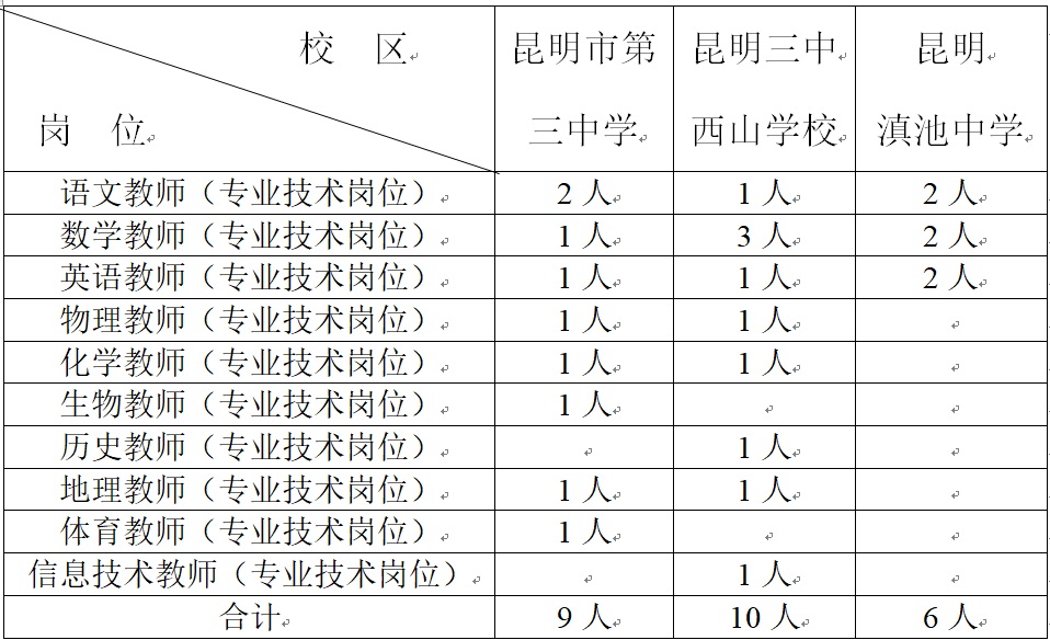 应聘昆明市第三中学、昆明三中西山学校的,请将材料交到昆明市第三中学教务处;应聘昆明滇池中学的,请将材料交到昆明滇池中学办公室。