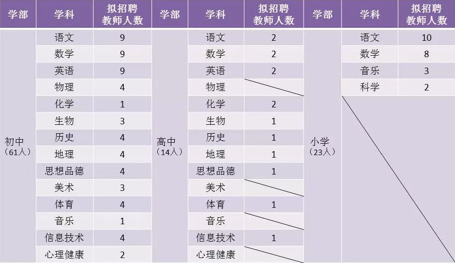 为满足社会对优质教育资源的需求,根据学校办学发展需要及人才储备计划,今年,我校建设路校区、昆明湖校区及润城学校面向省内外招聘德才兼备的优秀教师,具体如下: