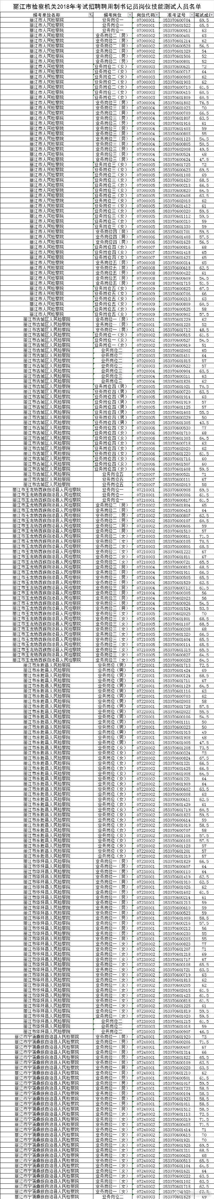 根据笔试成绩从高分到低分顺序,按照招聘岗位计划1:3的比例确定进入岗位技能测试的考生,人数不足上述比例的,以及不受开考比例限制的岗位,可进行差额或等额岗位技能测试(具体名单请查看“丽江市检察机关2018年考试招聘聘用制书记员岗位技能测试人员名单”)。