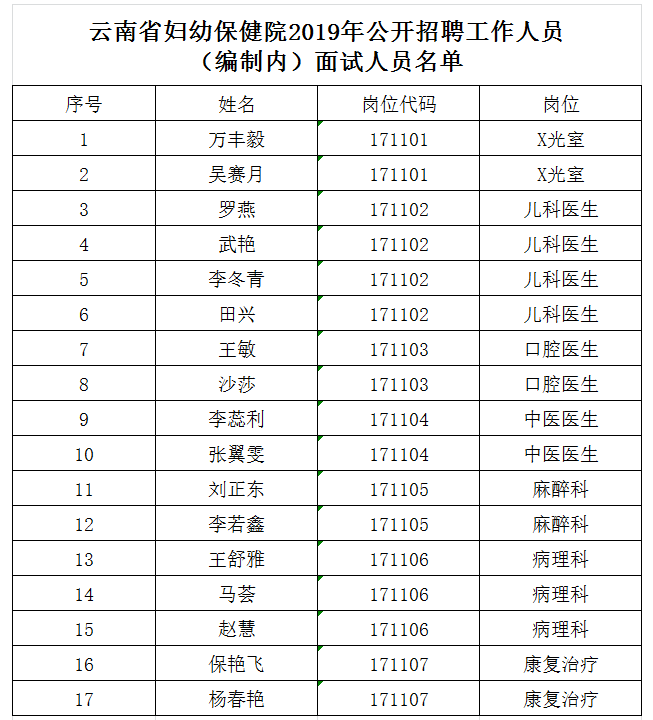 云南省妇幼保健院关于2019年公开招聘工作人员(编制内)面试公告