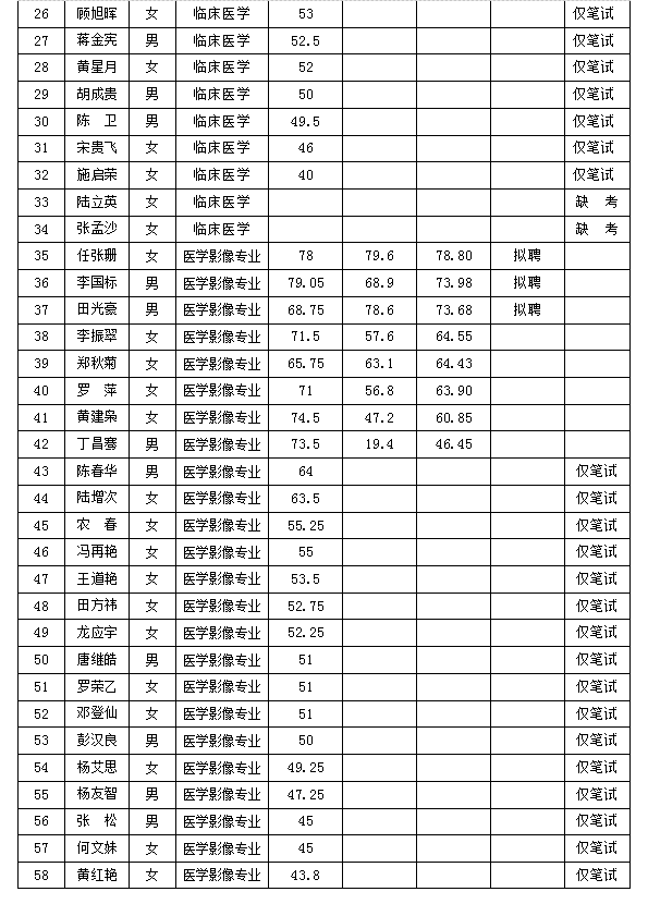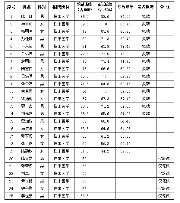 麻栗坡县人民医院2019年公开招聘编外人员成绩及拟聘人员公示