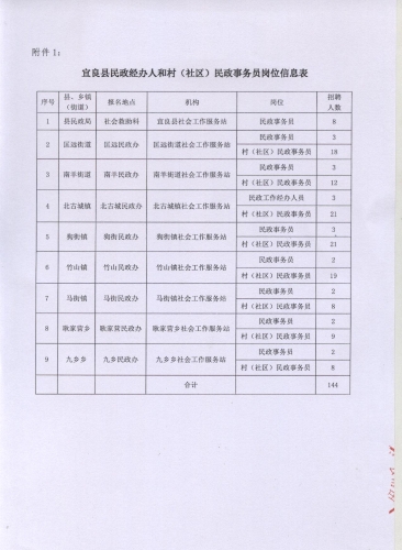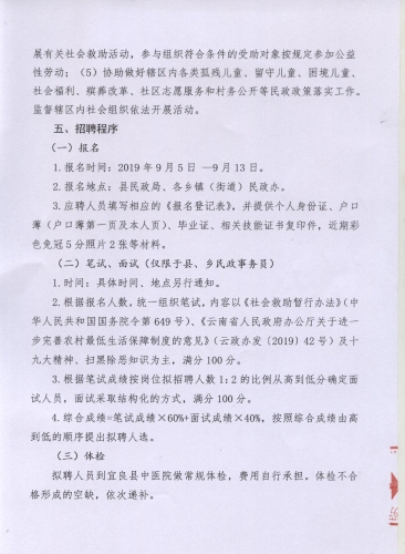 2019年昆明市宜良县民政局招聘乡镇(街道)和村(社区)民政事务员的公告