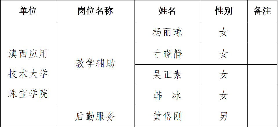 附件:滇西应用技术大学珠宝学院2019年公开招聘政府购买服务劳务派遣教学辅助及后勤服务人员拟聘用人员名单