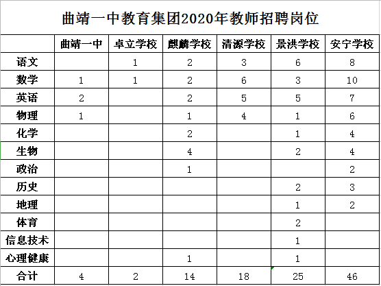 云南省曲靖一中教育集团第五次公开招聘2020年教师的公告