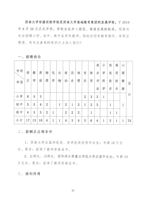 2019年西南大学官渡实验学校校招公告